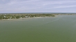 WS AERIAL POV Boat moving in sea, town in background / Ocracoke, North Carolina, United States - HD stock video