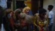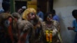 AMRAVATI, MAHARASHTRA, INDIA September 27, 2017 : Group of body painted people perform tiger dance at street of city, Tiger dance is a traditional item performed during dussera festival.