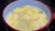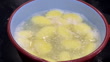 High angle close-up shot of gnocchi boiling inside small cooking pot in domestic kitchen