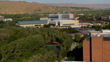 Boise State University campus and stadium located between river and foothills. Panning-orbiting camera motion. - 4K stock video