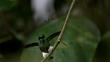 Booted racket tail hummingbird (Ocreatus underwoodii) lands in forest, Ecuador - 4K stock video