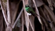 Booted racket tail hummingbird (Ocreatus underwoodii) takes off in forest, Ecuador - 4K stock video