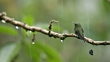 Booted racket tail hummingbird (Ocreatus underwoodii) takes off in rain, Ecuador - 4K stock video