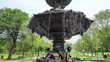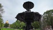 Brewer fountain (dates back to 1868) and golden dome of Massachusetts State Capitol (dates back to 1795) in Boston Common Park which is a public park in downtown Boston, Massachusetts.