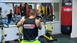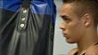 Boxer David Nyika training in boxing gym.