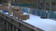 Boxes and parcels on conveyor belt at Yodel delivery sorting centre, Hatfield (BBC News Rushes - 23/09/2020 - AEXZ288W)