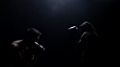 Young woman fighting with man. Battle of the sexes. Super slow motion