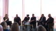 Music: Boyband Five reunite: press conference; ENGLAND: London:INT5ive (Five) being introduced by Sara Cox (BBC Radio 2 presenter) SOT5ive (Five) on to stage - Abz Love (Singer), Sean Conlon (Singer), Scott Robinson (Singer), J Brown (Singer) and Ritchie Neville (Singer)5ive (Five) press conference with Sarah Cox and band members SOT