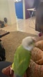 REDLANDS, CALIFORNIA - NOVEMBER 21: Brave pet bird aptly named "Mike Tyson" taunts Chihuahua dog in Redlands, California. (Footage by Collab via Getty Images UGC)