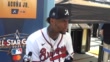 LOS ANGELES, CALIFORNIA - JULY 18: (INTERVIEW) COMPILATION) (SPANISH) Braves outfielder Ronald Acuña Jr. speaks about being excited to be part of the team and the importance of putting on a great show during the All-Star Week at the 2022 Gatorade All-Star Workout Day at Dodger Stadium on July 18, 2022 in Los Angeles, California. (Footage by Lucas Mayer/Getty Images)