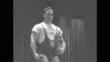Title card: "Brawn Parley - These Boys Carry Some Weight" superimposed over weightlifter / national AAU weightlifting championships / crowd watching weightlifters on stage / various CU of men straining to lift weights / Arthur Jones, Otis Chandler, and Norbert Schemansky lift / Schemansky lifts 420lbs, sets new record and wins
