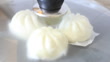 Baozi with chicken in steam being coocked. Delicious chinese bread.