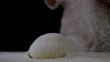 Concept video of throwing flour on bread dough in slow motion. 4k video.