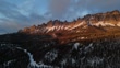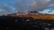 North Breccia Cliffs at sunset, with alpenglow illuminating the breccia rock formations in winter, Wyoming.