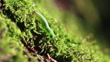 Bright green caterpillar slowly making its way across a vibrant mossy surface - 4K stock video