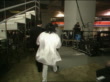 Music: 1996 Brit Awards: Jarvis Cocker and Michael Jackson incident; c)NAO (Scotchbrook,Ben)ENGLAND: London: Earl's Court:NIGHTMS Searchlights shining up into sky with "Brit Awards 96" sign in b/g TCMS Sam Fox (Samantha Fox, singer) in car as along )CMS Screaming girl fans SOT PAN R-L Rolls Royce arriving in b/g Backstage:INT TCMS Damon Albarn (Blur) chatting at table BV Rigger working on set TRACK MS Michael Jackson (pop singer) along PAN L-R to BV away TRACK (unmasked) (only 7 secs)