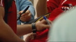 Fans waiting at arrivals / Players along through arrivals doors / people cheering and applauding / players signing autographs and posing for photographs / Sam Warburton (British & Irish Lions Australia tour captain 2013) along with trophy on top of luggage