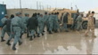 Afghan recruits running and doing push-ups at training camp