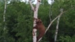 a cinnamon coloured American Black Bear climbing a poplar tree
