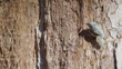 Close up of a solitary brown treecreeper (Certhia americana) foraging high up on a sunlit tree trunk, collecting offcuts from the wood for its nest, Yosemite, California, USA (FKAD627H - Clip taken from programme rushes - 333938)