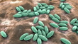 Animation of several Brucella bacteria on a surface. This is the cause of the disease brucellosis, a zoonosis typically caught from infected livestock. It causes a recurring fever, joint pain, fatigue and foul-smelling sweat. It can be fatal if left untreated. Brucella is a small Gram-negative bacterium that lives inside cells in its host