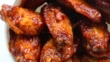 Bowl of Buffalo Wings with red and spicy sauce