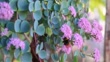 Fuzzy bumblebee pollinating the vibrant pink flowers of a siebold's stonecrop plant in a garden
