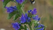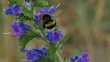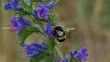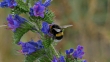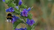 Bumblebee collects pollen on viper´s bugloss, slow motion - 4K stock video