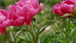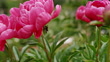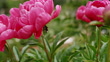 Super slow motion shot of a bumblebee pollinates flowers in the garden.