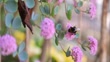 Bumblebee pollinates pink Sedum-sieboldii flowers - HD stock video