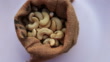 Burlap sack filled with cashew table top spin - 4K stock video