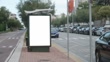 Time lapse footage showing a bus stop with a blank billboard in a city street