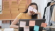 Business concept of 4k Resolution. Asian women are tired from working in the office. sme business selling products online.
