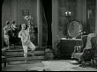 1926 B/W WS Butler removing robe from man (Ben Turpin) who stretches and dances around room while women play musical instruments / USA - stock video