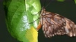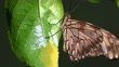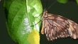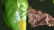 A butterfly is laying its eggs on the leaf. Small yellow eggs. - 4K stock video