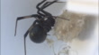 A button spider perches on its nest.