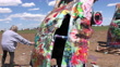 Amarillo, Texas , USA - March 26, 2021: People visit the Cadillac ranch car sculptures amid the Covid-19 pandemic. (Footage By WW News/Gettyimages)