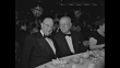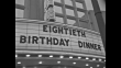 CU cake with number "80" on top / ext Hollywood Palladium with marquee "Hollywood Salutes Adolph Zukor" / "Eightieth Birthday Dinner", pan of interior of vast ballroom / two shots Lottie Zukor, Adolph Zukor, founder of Paramount Pictures, in front of cake / Elenore Balaban, Barney Balaban seated at table / Jesse Lasky, and Y. Frank Freeman / Paul Douglas, Jan Sterling / William Boyd (Hopalong Cassidy) Grace Bradley / same birthday cake is rolled out to Zukor