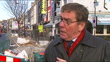 ENGLAND: London: Camden Town:EXTSPEEDED UP SEQUENCE pedestrians along Camden High Street past Camden Market entranceNIGHTPavement bollardCobbled pavement outside high street fashion shops'Restricted Zone' traffic sign'CCTV In Operation' road sign'No U-Turn' road signPedestrians along high street with lamposts and street furnitureCouncillor Chris Knight (Camden Council) interview SOTCUTAWAYSRoadworkers widening pavement area and pedestrians along busy Camden High StreetTraffic along narrowed high street - pedestrians on widened pavementsPedestrains along widened pavements near Camden LockSean Canavan (Local Resident - blind man) along high street with guide dog and interview SOTReporter to camera