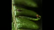 A camouflaged green caterpillar catches a fruit fly on a green leaf. Available in HD. (Core Number: FKAC551K)