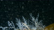 Caprella skeleton shrimps. Skeleton shrimps (Caprella septentrionalis) waiting for prey. Skeleton shrimps mimic the colour and shape of the fronds of seaweed, hydroids and bryozoans amongst which they live. They use this camouflage to help ambush their prey, remaining motionless for long periods of time. They are omnivorous, feeding on diatoms and detritus as well as protozoans, smaller amphipods, and crustacean larvae