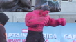 Film: 'Captain America - Brave New World' London premiere; ***SOME FLASH PHOTOGRAPHY***ENGLAND: London: Trafalgar Square:EXTGVs of Red Hulk / Captain America shieldGVs cast photocall including:Harrison Ford (Actor - Thaddeus 'Thunderbolt' Ross / Red Hulk) Julius Onah (Director - 'Captain America - Brave New World')Anthony Mackie (Actor - Sam Wilson / Captain America)Julius Onah (Director) interview SOT - Daunting task of taking on the Marvel comic book fans- How difficult it is to make something personal, within the colossal blockbuster machinery