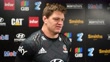 CHRISTCHURCH, NEW ZEALAND - JUNE 02: Captain Scott Barrett speaks to the media prior to a Crusaders Super Rugby Trans-Tasman training session at Rugby Park on June 02, 2021 in Christchurch, New Zealand. (Footage by Kai Schwoerer/Getty Images)
