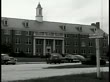 MOT 1945: AGRICULTURAL LABORATORY: WS Car driving down bend in road. CU Shield plaque 'U.S. Department of Agriculture Research Center.' WS Car parking in front of administration building. MS Road sign directing different departments. Beltsville MD