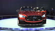 ---WS car on turntable; video wall graphics introduce Q50 / WS complete 360º turn on turntable / MS front end / CU headlight / MWS-Narrator talks about front end, carbon fiber body pieces, and rear end / CU wheel / CU carbon fiber rear view mirror / MS steering wheel & dashboard / MS door panel with carbon fiber insert / CU exhaust ports with Formula One-inspired carbon fiber rear end / WS HA looking down on Q50