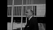 Car with Lord Ismay arrives at probably NATO building / Ismay alighting from car / Ismay getting out of car and walking away with man who met him at car / Ismay and man standing, building and sculptures in bg / CU Ismay / Ismay and man seated, can see Eiffel Tower in bg through window / MS men talking / CU Ismay / buildings by Seine River, can see traffic on street and bridge