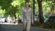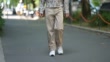 MILAN, ITALY - JUNE 19:(SLOW-MO) Carlo Sestini wears white latte sunglasses, a white with black / khaki print pattern silk skirt from Etro, beige large pants, white leather and gray suede sneakers from New Balance, outside the Etro fashion show during Milan Fashion Week Menswear S/S 2023 on June 19, 2022 in Milan, Italy. (Footage by Edward Berthelot/Getty Images)