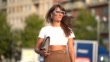 MILAN, ITALY - SEPTEMBER 18: Carlotta Rubaltelli wears fringed and glitter glasses, a white cropped t-shirt, a bag, brown pants, shoes, outside the Alberta Ferretti show during Milan Fashion Week Spring/Summer 2020 on September 18, 2019 in Milan, Italy. (Footage by Edward Berthelot/Getty Images)