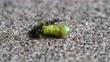 Carpenter ants feeding on a caterpillar. - 4K stock video