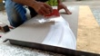 Carpenter applying glue on laminated plastic sheet - 4K stock video